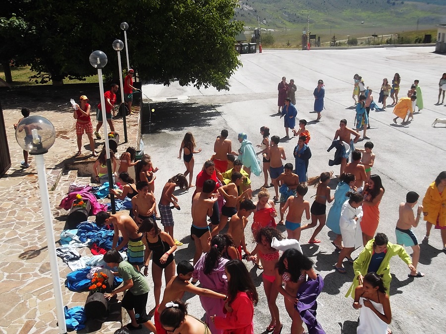 La decima giornata per tutti i ragazzi è trascorsa al mattino con giochi interni ed una bella nuotata in piscina. Ma non finisce qui: in questa raggiante e calda domenica si sono rinfrescati e divertiti anche con i gavettoni.