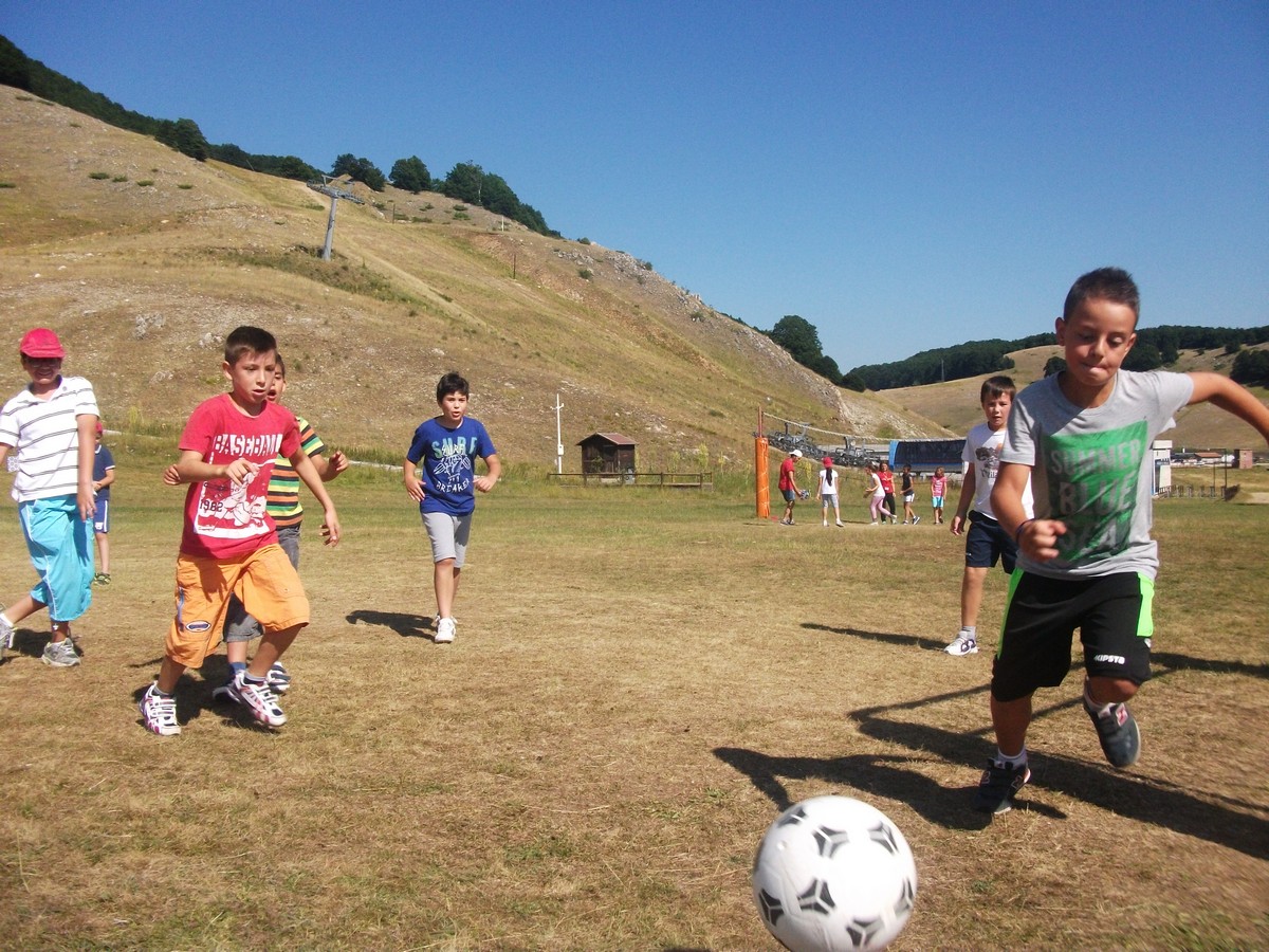 Due calci al pallone prima di andare tutti insieme allo Zoo di Castel di Sangro, dove possiamo conoscere alcune specie della fauna locale come orsi e lupi. Dopo un buon pranzo all’aperto ci spostiamo al centro di Roccaraso e qui continuiamo a giocare.