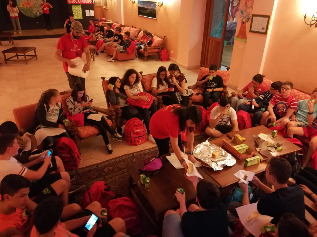 Dopo un ottimo pranzo hanno approfondito la conoscenza reciproca grazie ai simpaticissimi giochi organizzati dagli operatori e hanno personalizzato gli zainetti e i cappellini regalo di GIOCAMONDO.